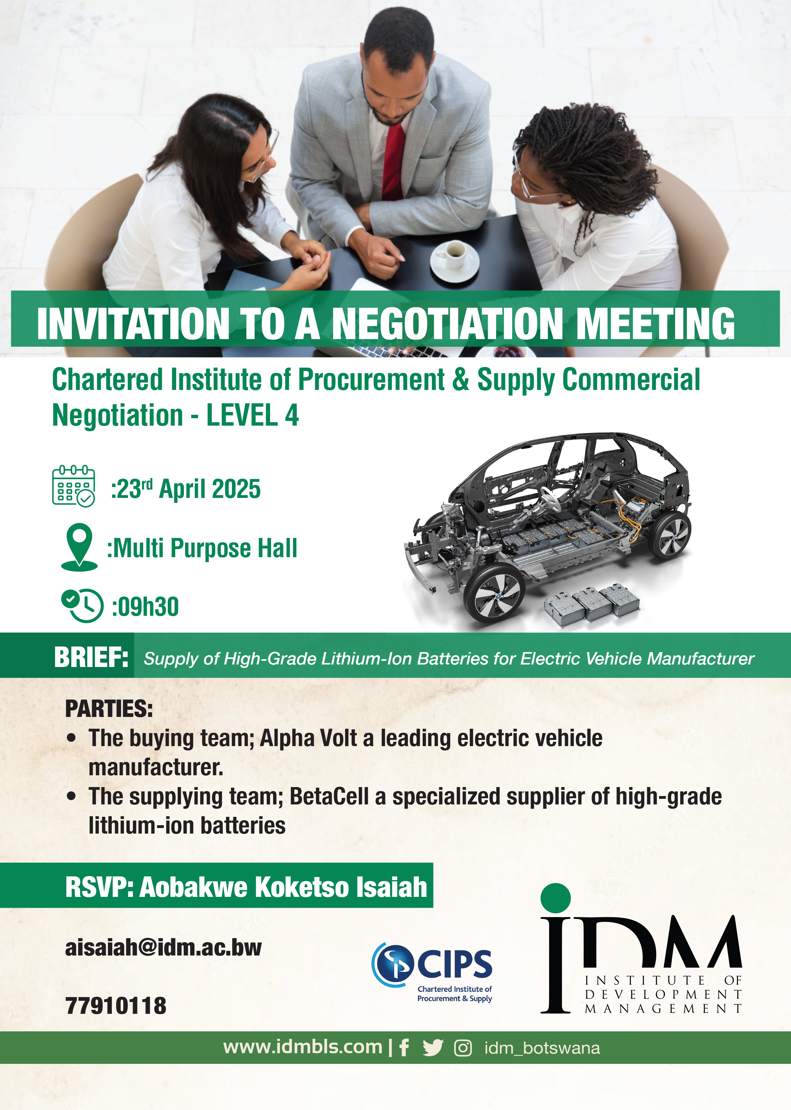 Invitation to Negotiation Meeting by Keineetse Seropola - Tuesday, 22 April 2025, 9:40 AM Number of replies: 0 Dear Francistown Students;Kindly see an attached announcement. Permalink
